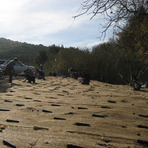 This fall, students from Professor Fernando Agudelo-Silva’s Biology 112 class participated in a project that addressed recovery of several endangered species, including coho salmon. Working in disrupted watershed areas of Lagunitas Creek, College of Marin students planted seeds and seedlings along banks of streams where salmon spawn. The revegetation of the banks improves water quality for the hatching of salmon eggs and survival of young salmon.